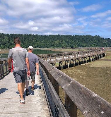 While visiting the Olympia people, we walked five plus miles of boardwalk through the wet-lands of amazing Nisqually preserve while watching different kinds of birds including blue herons and other birds feeding their babies in nests lining the gazebo ceilings.